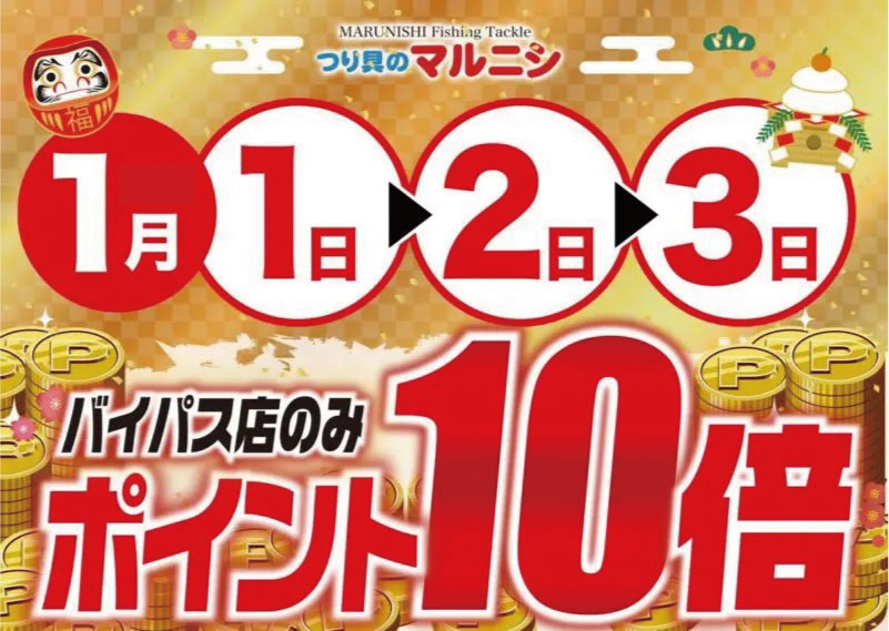1月1日からバイパス店新春セール、ポイント10倍キャンペーンにおきまして、