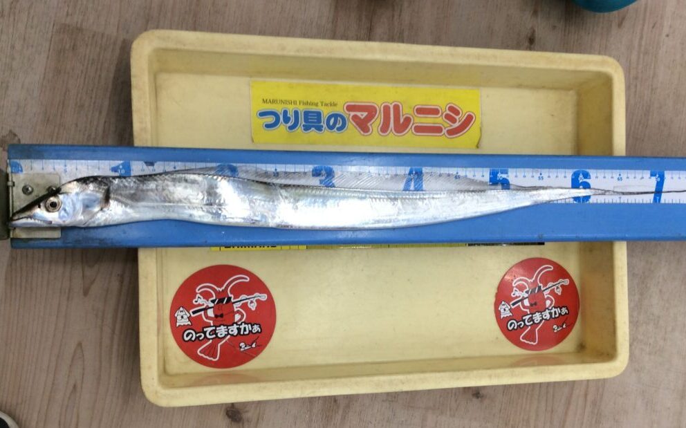 水軒にてウキ釣りでタチウオ77㎝をゲット!エサはサンマを使われたとのことです