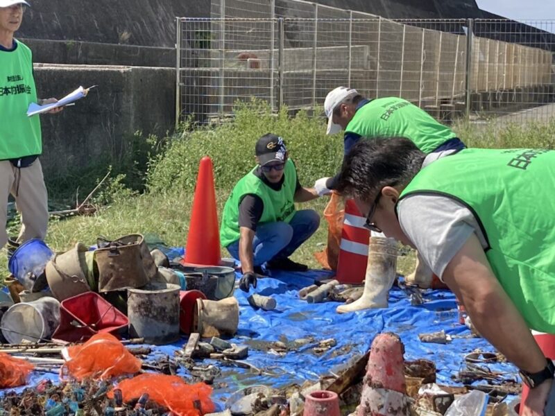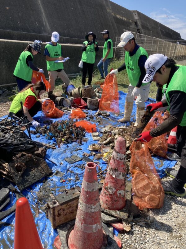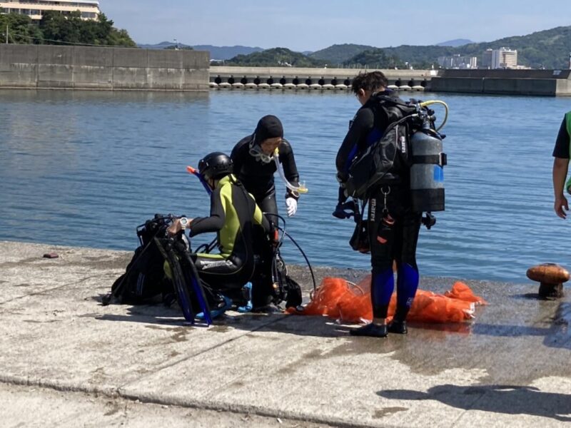 ダイバーの方々が海底のゴミを回収して、陸上のメンバーが集めていきます。