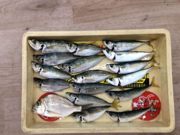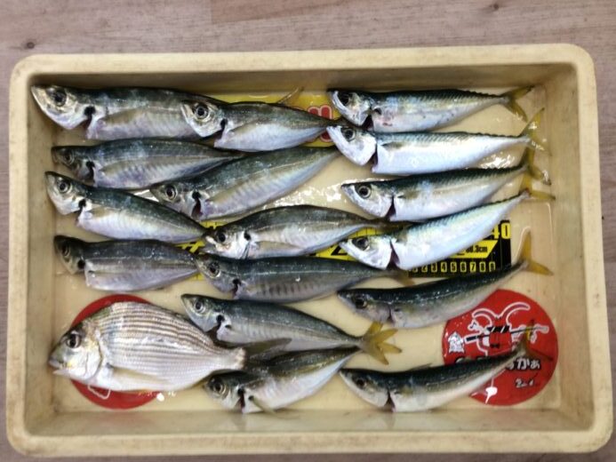 マリーナシティーにて投げサビキでアジ、サバ、ヘダイの3種をゲット!