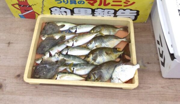 マリーナシティーにて遠投サビキ、胴突き仕掛けでアジ、カワハギ、へダイ、アイゴの4魚種をゲット!