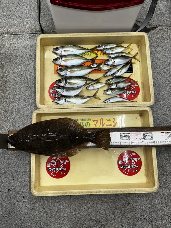 アジ最大25cmになんと45cmのヒラメの釣果!
