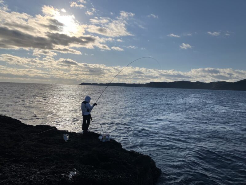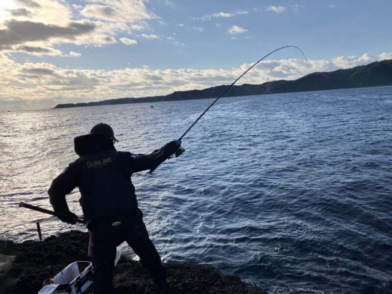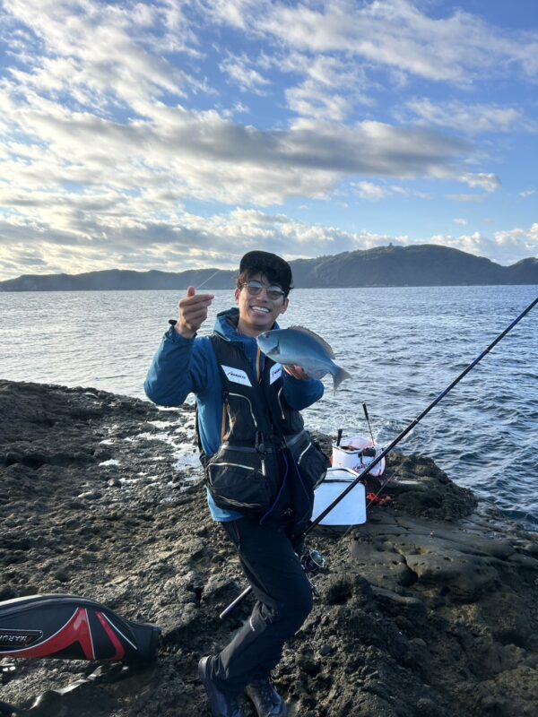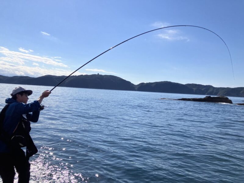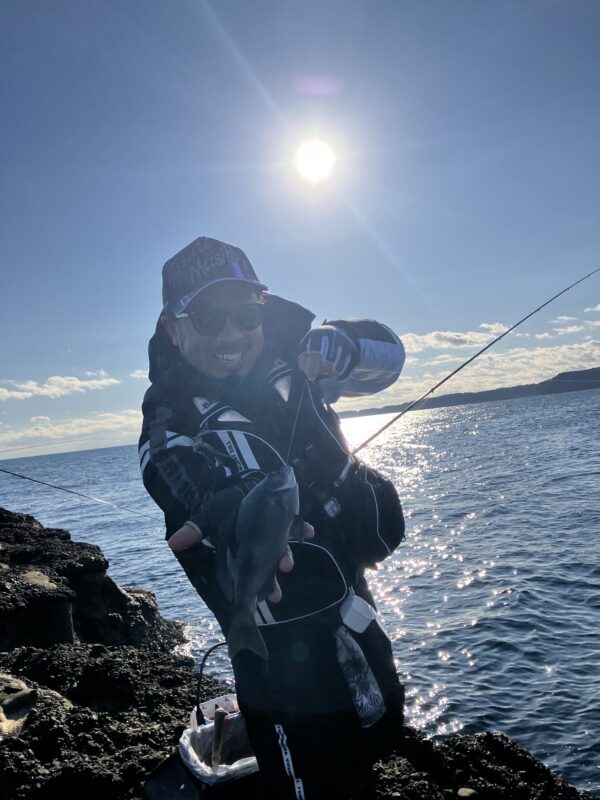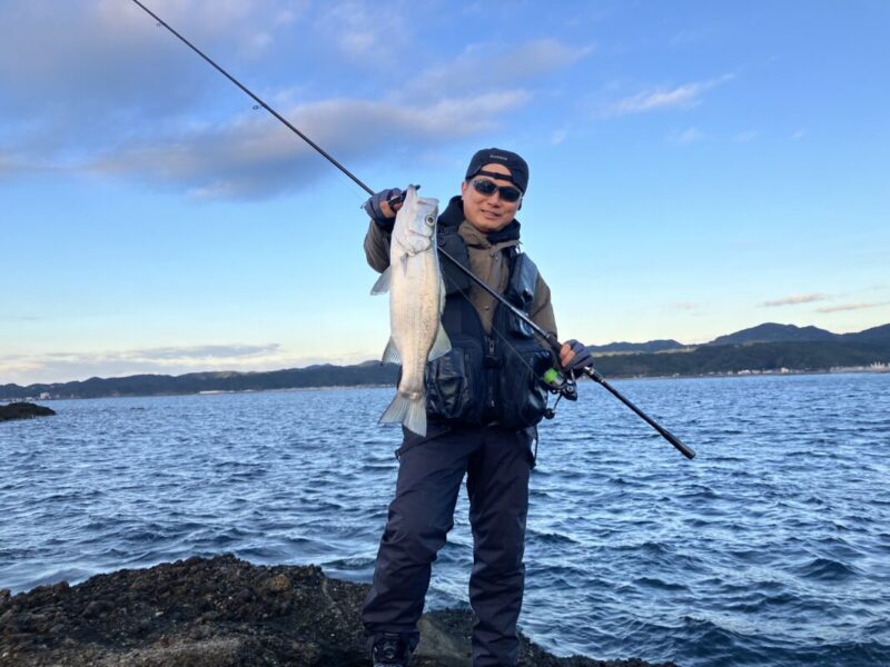 ファーストヒットはスタッフ松本のヒラスズキ!