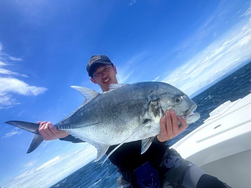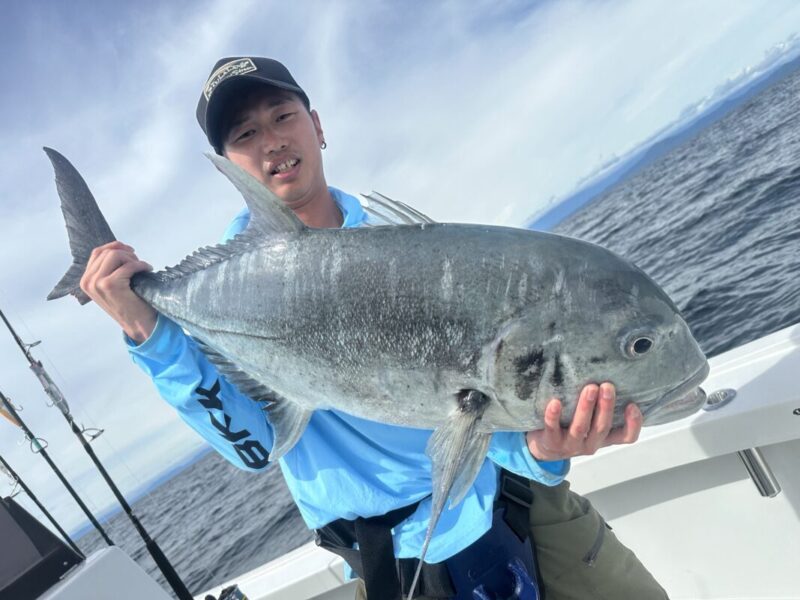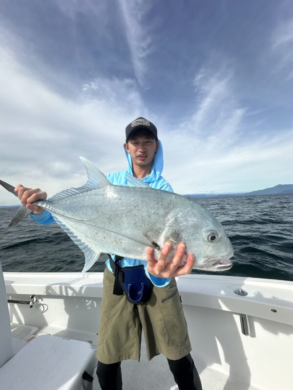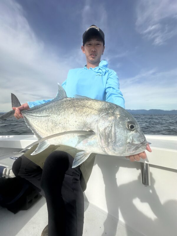 最終日は風、波強く移動にも時間がかかり渋い状況下に!それでも魚影の濃いフィールドなのでGTからの反応は得られます!