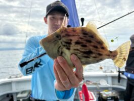 肝パンのカワハギを求めて紀北沖へ! きしゅう丸さんのカワハギ便へ! カワハギの活性が悪いのか上手な人で2桁釣れたらいい方との事でした! 港から出船して30分程でポイントに到着! やはり情報通りアタリがありま