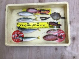 藤田様よりお持ち頂きました。 和歌山市内でのカゴ釣りの釣果です。 28㎝のアジが多数!! 20㎝のタイも!! 藤田様釣果のご紹介ありがとうございました。 皆様の釣果報告ドシドシお待ちしております。