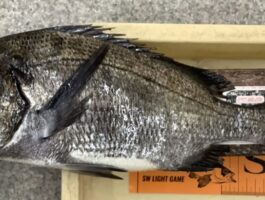 12月1日大崎にて、味村様の釣果です。 チヌ 43.0cm‼ 紀州釣りでの釣果との事でございます。お疲れのところお持ち込みいただきまして、ありがとうございます。投稿が遅くなり申し訳ございません。ダービーの方、登