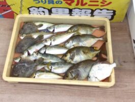 ホリ君より釣果のお持ち込みを頂きました! マリーナシティーにて遠投サビキ、胴突き仕掛けでアジ、カワハギ、へダイ、アイゴの4魚種をゲット! お疲れのところお立ち寄りいただきありがとうございました!